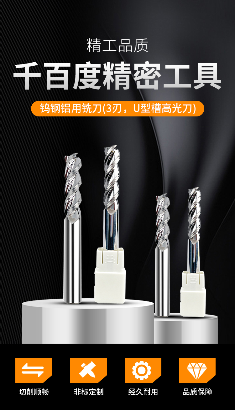 汽车零部件发动机缸体 合金铝用铣刀 U型槽+45°螺旋角设计